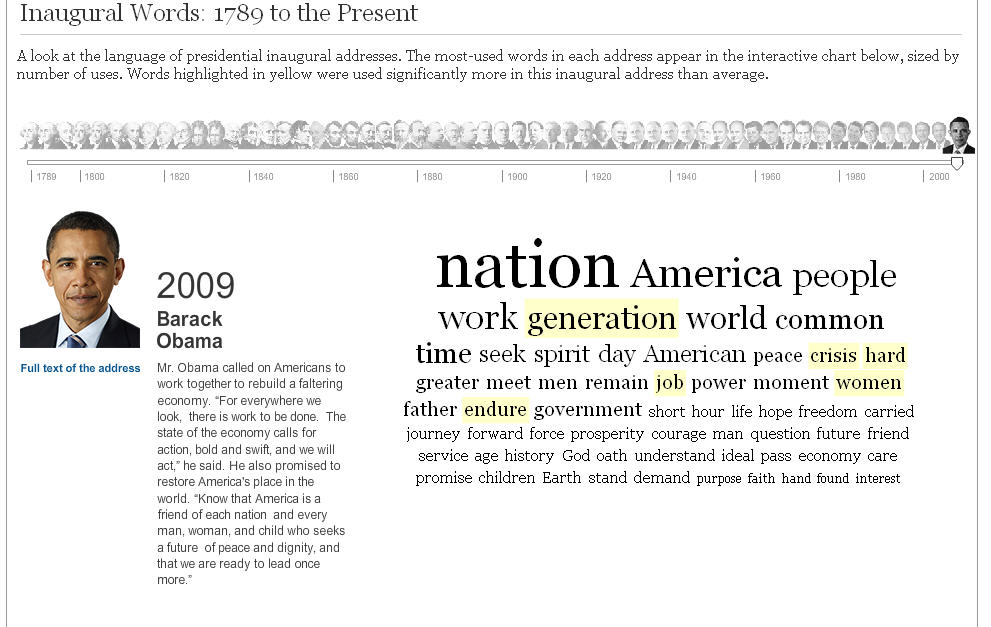View all of the president's speeches in a word cloud at: http://www.nytimes.com/interactive/2009/01/17/washington/20090117_ADDRESSES.html