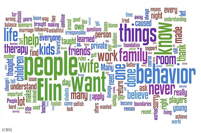November. CBSNEWS.com ran his public statement today through a word cloud generator at http://www.wordle.net/ to see which words were most frequently used in his statement. The words, "people," "want," "Elin," and "behavior" pop in the word-cloud. Perhaps the single most important thing that Tiger said today was "I am deeply sorry for my irresponsible and selfish behavior." But that doesn't show up prominently in the world-cloud. It's in the lower right corner. What's more important? What you say? Or how often you say it?